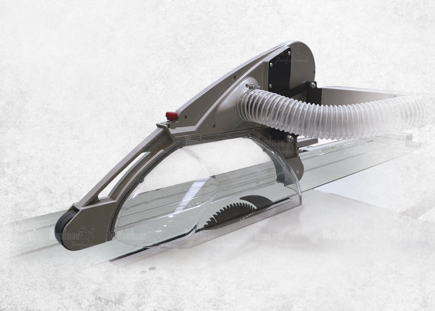 The transparent blade guard provides full visibility of the cutting area. It also includes a dust extraction port to remove cutting residues, protecting the operator from potential blade-related incidents.