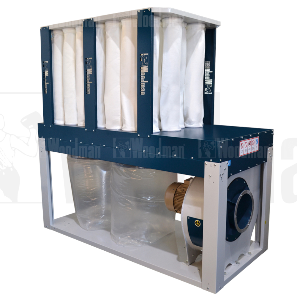 El Aspirador DE-5000 es un aspirador industrial de alto rendimiento, diseñado para aplicaciones exigentes. Incorpora un sistema de filtración por mangas con 35 filtros y 2 sacos de gran capacidad, garantizando una aspiración eficiente y continua. Equipado con un motor de 7,5 HP, alcanza un caudal aspirable de 5.000 m³/h, ideal para entornos industriales. Su estructura robusta, ventilador metálico y bajo nivel sonoro de 80 dB aseguran durabilidad, seguridad y confort operativo.