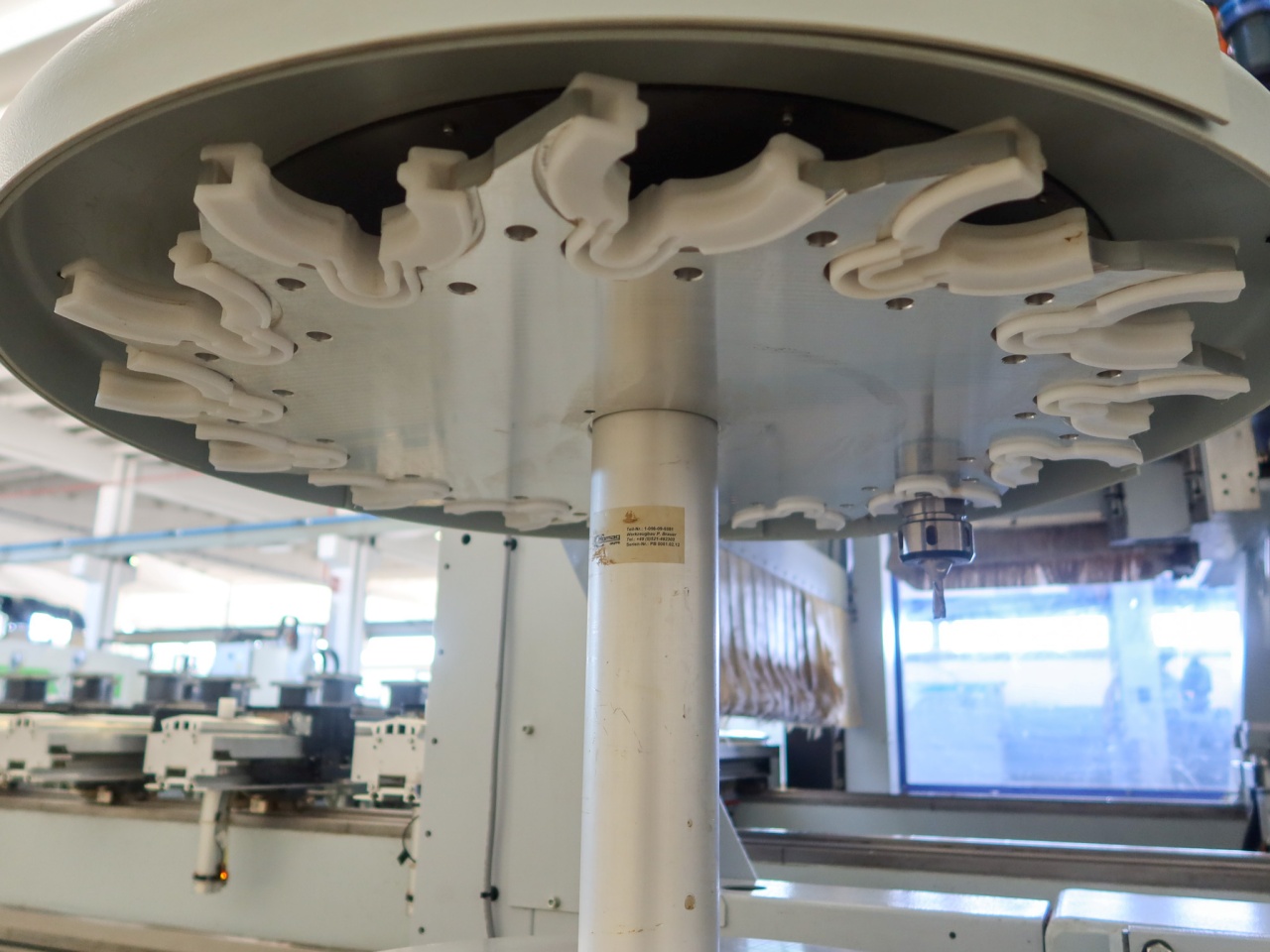 Dispõe de mesa de barras com ventosas de vácuo, fuso principal de elevada potência e múltiplos fusos de furação, garantindo excelente desempenho em operações de fresagem e furação.