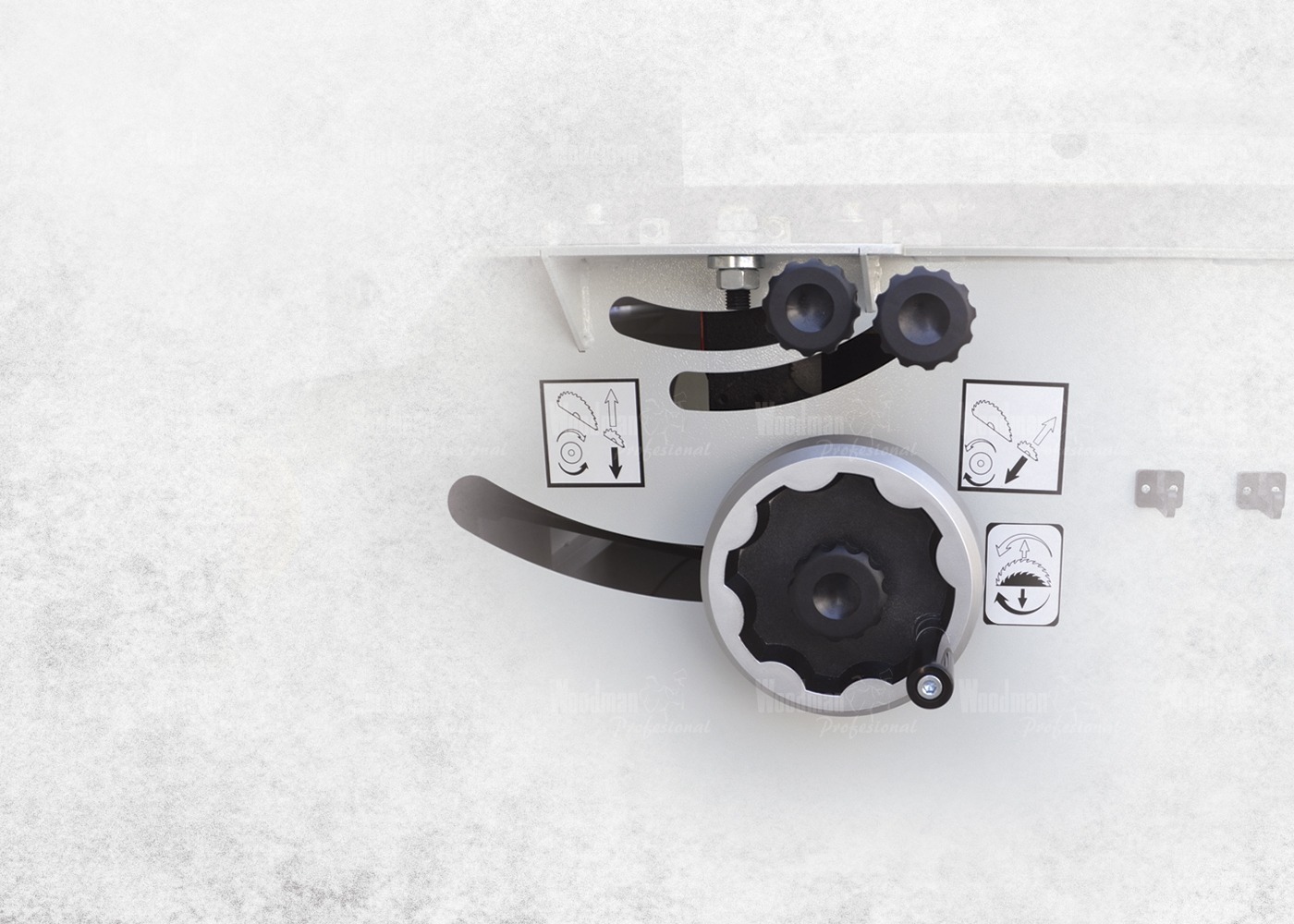 Equipada com um sistema em paralelogramo com ajuste rápido e deslizamento suave. O batente em alumínio é deslizante para peças curtas. Para operações especiais, disponibiliza duas posições de trabalho.